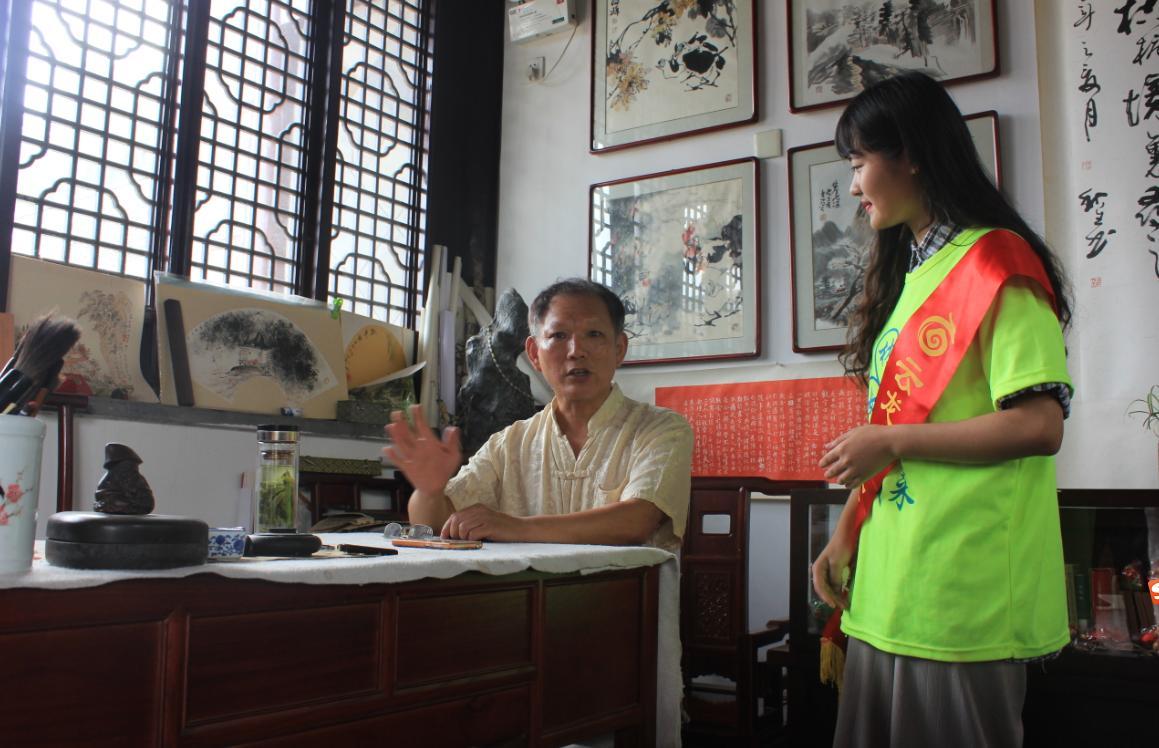 材料学院暑期志愿者在向游客介绍云龙书院风貌