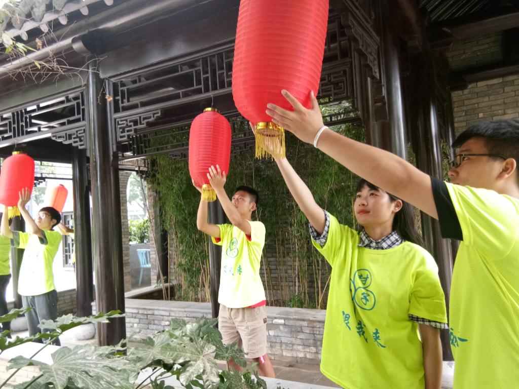 材料学院暑期志愿者“小青葱”们在帮助悬挂灯笼