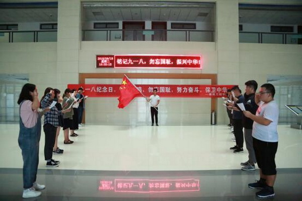 9月18日上午,为了纪念九·一八这个特殊的日子,提升当代大学生的历史责任感和使命感,展示新青年的爱国热情,建筑工程学院组织开展的“警钟长鸣,勿忘国耻,努力奋斗,保卫中华”九·一八爱国宣誓及签名条幅活动于综合楼B18大厅顺利举行。