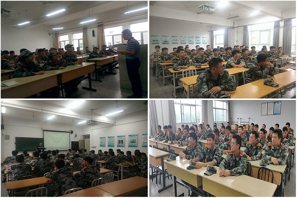 当防空警报响起的那一刻,机电学院所有大一新生在军训现场集结,集体向死难同胞默哀;默哀完毕,同学们举起拳头郑重宣誓:“铭记历史,勿忘国耻; 励志图强,振兴中华。”同学们以笔直的军姿站立,挺拔如松,字字铿锵,声音洪亮,回音久久不散。接着,军训营营长做了《勿忘国耻、振兴中华》的主题讲话,引领全体师生回顾了我们民族那段灾难深重的历史,号召大家勿忘国耻,勤奋学习,立志成才,用我们的实际行动,为中华民族的强大做出贡献;最后,辅导员、教官和学生代表在横幅郑重签名,立誓铭记“九一八”,勿忘历史。