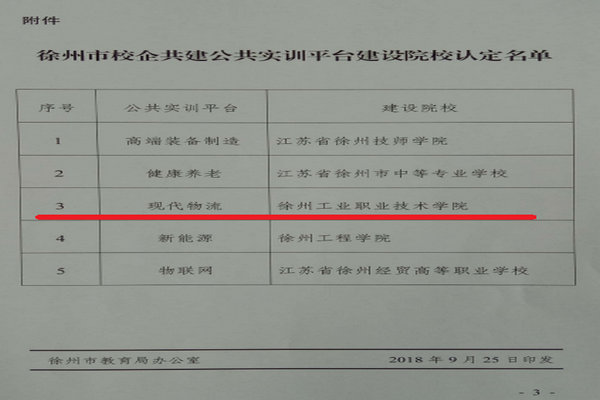 我校“徐州现代物流技术实训平台”入选徐州市校企共建公共实训平台