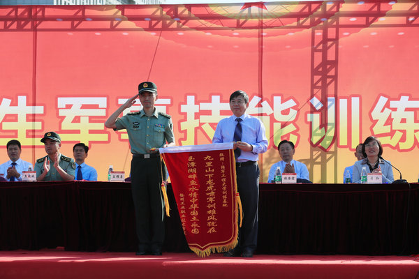 院长张登宏代表学校向陆军工程大学训练基地赠送锦旗。