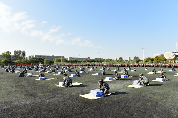 据悉,2018级军训在继承以往优良训练传统的基础上,实施了一系列创新育人举措,取得了扎实的育人成效。一是将育人落脚于同学们的日常生活点滴,通过实施军事训练一日生活制度、宿舍长报告制度、军事训练行为守则,强化同学们基础文明和良好行为习惯的养成。二是将育人统一在社会主义新时代对新青年的成长要求上,通过实施课前10分钟聆训制度,开展纪念九一八主题教育活动、国防教育讲座、“庆祝淮海战役胜利70周年”军训歌咏比赛等活动,组织2018级学生深入学习中国共产党和人民军队的光荣历史、优良传统,学习习近平新时代中国特色社会主义思想和强军思想,激励大家树立远大理想,继承弘扬党和人民军队的优良传统,坚定信念、增强信心,奋发成才、报效国家。