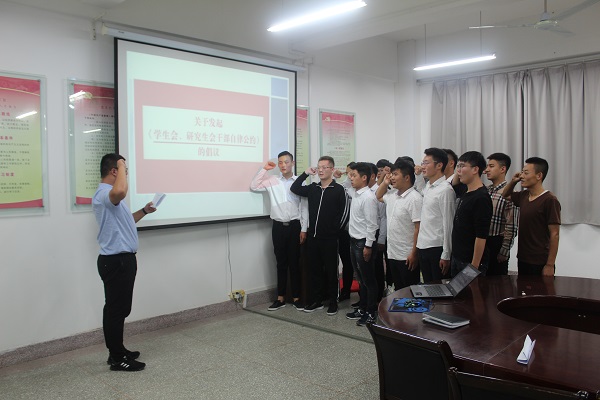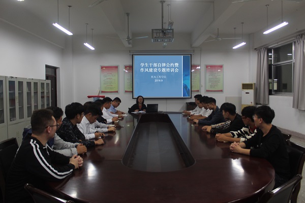 针对接连发生的多起学生组织功利化、庸俗化问题,北大清华等数十所高校学生会、研究生会于10月6号联合发起《学生会、研究生会干部自律公约》倡议。机电工程学院积极响应,坚持立足同学,服务同学,组织开展了学生干部自律公约暨作风建设专题培训活动。