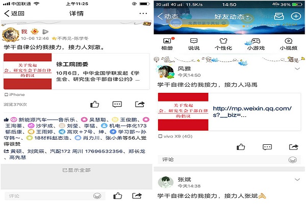 10月6日,学院团总支积极响应校团委发起的线上“自律公约我接力”活动,全体学生干部进行自律公约线上接力;同学们表示,作为学生干部,将坚决反对精致利己主义,坚决抵制歪风邪气的侵蚀,坚决反对“官”本位思想和作风,坚决抵制社会不良习气侵蚀。
