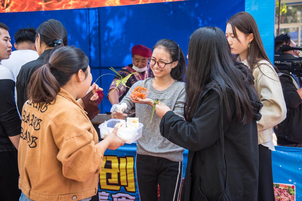 美食嘉年华的现场,人头攒动,热闹非凡。近30多家摊位摆满了各种各样的菜肴、风味特色小吃,今年还特别引入了国家级非物质文化遗产民俗文化展览,各种手工艺作品美轮美奂。美食文化节活动吸引了广大师生前来观赏品尝。