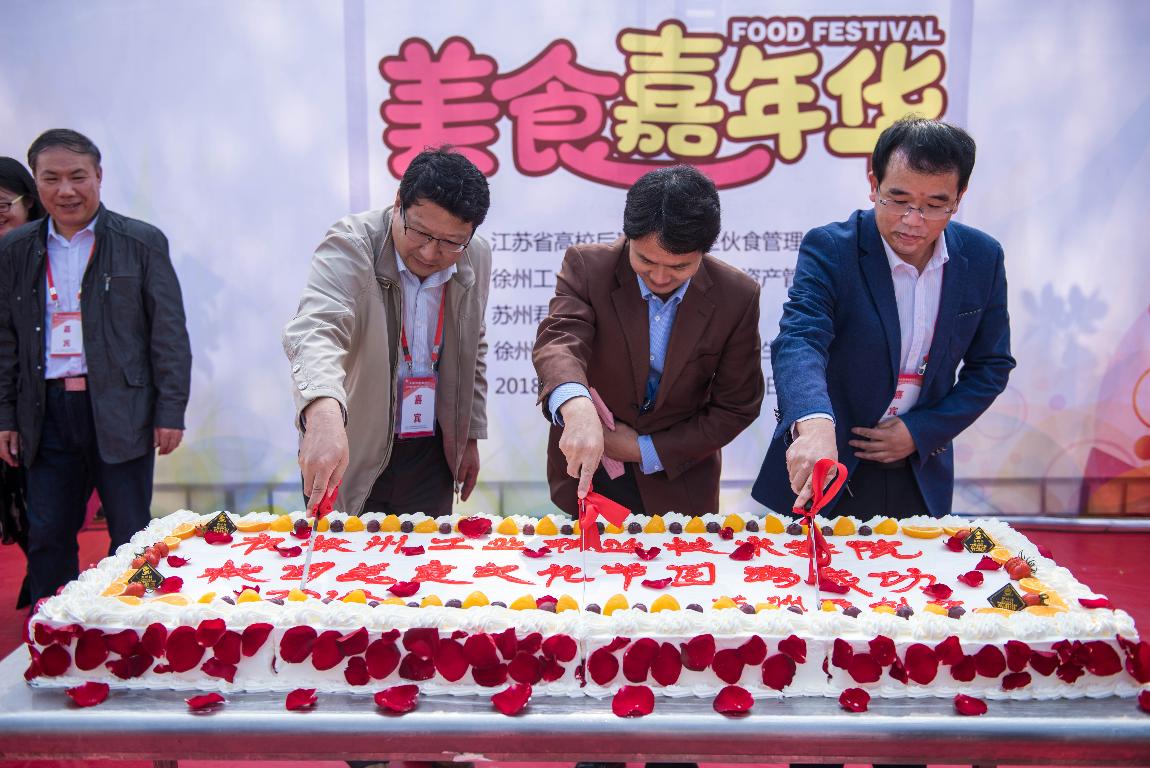10月24日,由江苏省高校后勤协会伙食专业委员会主办,我校承办的“2018年校园美食文化节”暨第三届江苏省高校美食文化节在第三食堂东广场隆重举行。我校副院长朱作付,江苏省高校伙食专业委员会徐连片片长、中国矿业大学总务部任志宏部长,徐州医科大学后勤领导、我校校团委、学工处、后勤中心等部门负责人出席了美食节的开幕仪式。