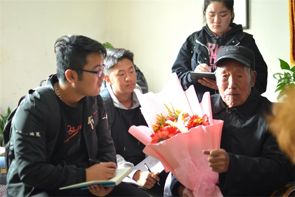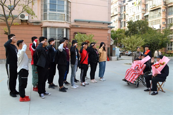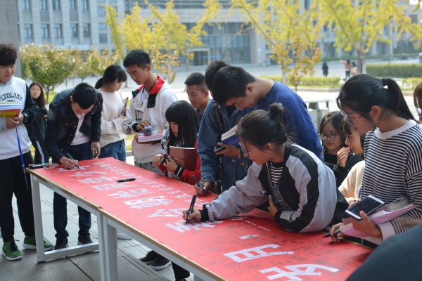 最后,同学们把最美的鲜花献给两位老人,并且用庄重的军礼向两位英雄致以崇高的敬意。回校后,全院各班级掀起了学习革命先辈英勇奋战保家卫国的热潮,同学们还举行条幅签名活动,把青春的铮铮誓言落到实处。