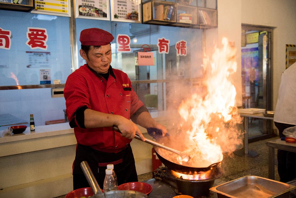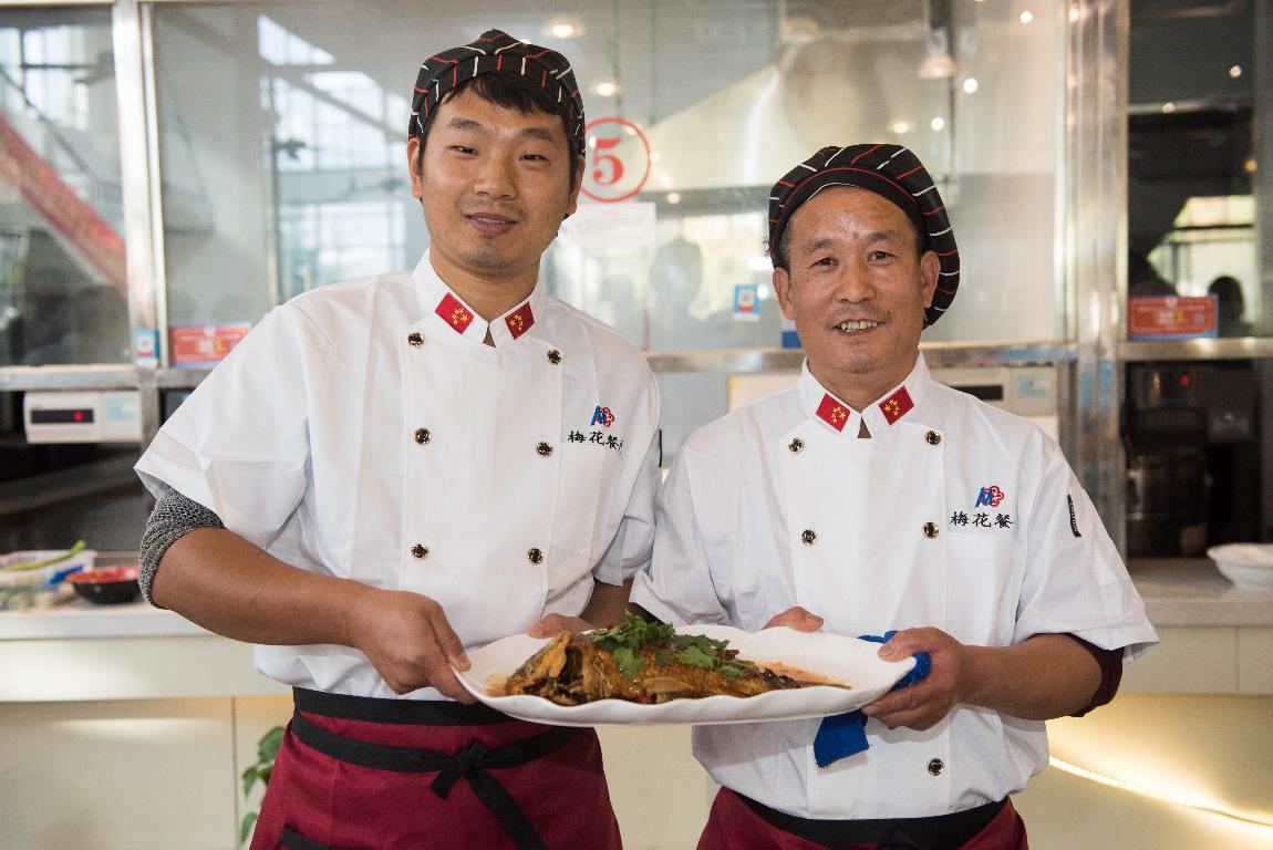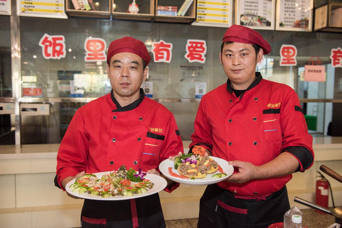 我校三个学生食堂的餐饮公司精心制作了30余道美食菜肴在展示区集中展示,供广大师生赏鉴。同时来自三家餐饮公司及教工餐厅的10支红白案代表队参加了比赛,现场展示了我校食堂厨师的精湛厨艺。比赛要求红案组需完成一道命题菜(团膳快餐)、一道半命题菜(草鱼)及一道创新菜品的制作,白案组需完成指定品种大包子和两道自选面点的制作。