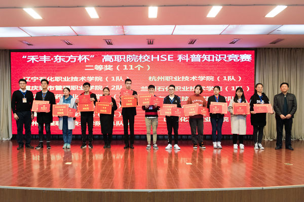 11月16日16:00,中国化工教育协会秘书长辛晓,全国石化行指委化工安全及环保类专指委主任周立雪, 我校副院长张芳儒等各界领导出席了闭幕式,并对获奖的团体颁发了获奖证书和奖杯。竞赛共评选出“禾丰·中控杯”现代化工HSE应用技能大赛一等奖队伍3个、二等奖队伍5个、三等奖队伍6个,其中乐动网站网页版、金华职业技术学院、兰州石化职业技术学院三支参赛队斩获现代化工HSE应用技能大赛一等奖;“禾丰·东方杯”高职院校HSE科普知识竞赛一等奖队伍6个、二等奖队伍11个、三等奖队伍15个,其中重庆化工职业学院科普队、辽宁石化职业技术学院科普2队、乐动网站网页版科普1、2队、台州职业技术学院科普2队、连云港职业技术学院科普1队,共六支参赛队斩获高职科普知识竞赛一等奖殊荣。