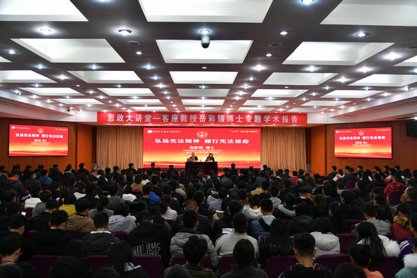 李红副书记主持报告会,并要求我校师生,在日常工作、生活、学习中进一步加强宪法法律的学习,真正做到“弘扬宪法精神,履行宪法使命”,为建设“富强民主文明和谐美丽”的社会主义现代化强国,在各自岗位做出自己应有的贡献。