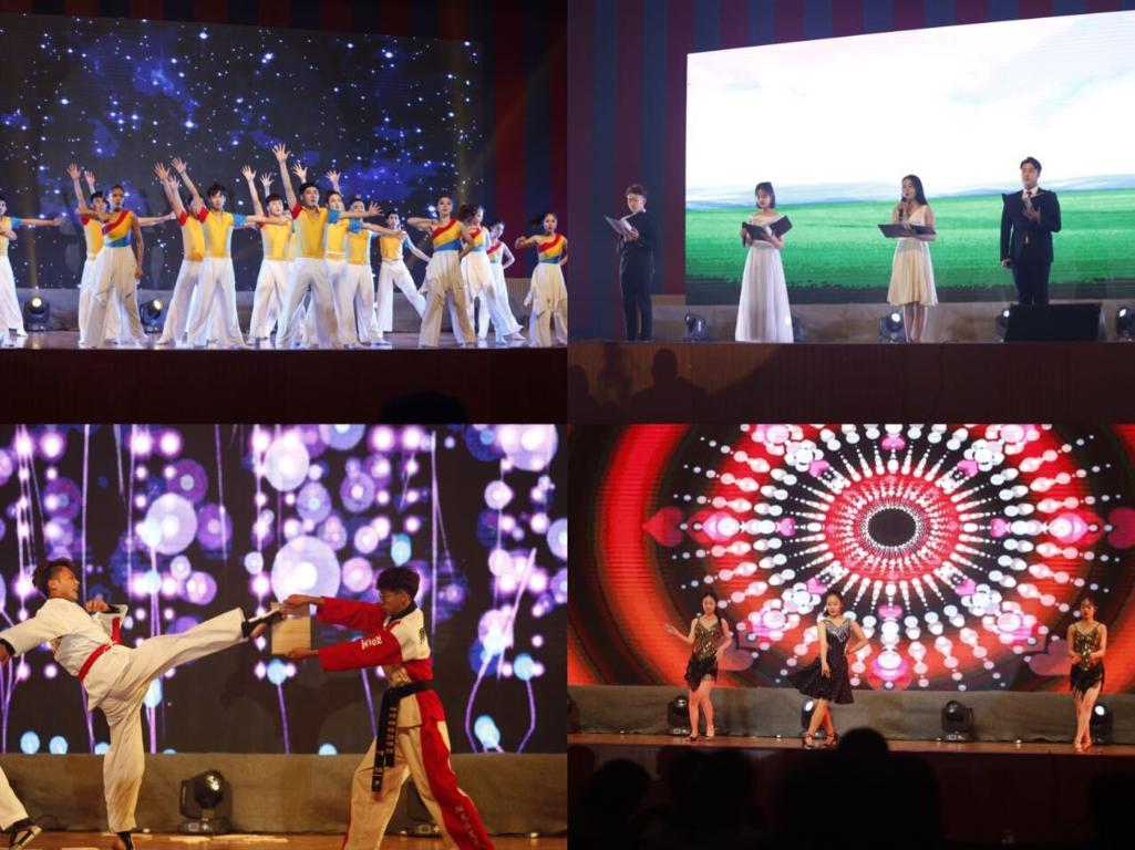 晚会精彩纷呈,14个节目各具特色,令人目不暇接。晚会在龙狮社团的精彩表演中拉开帷幕,健美操协会和TBS街舞社带来的《nice舞动啦啦操》和《精舞门》散发着青春的活力;B-BOX协会、话剧协会、纯蓝吉他社和吾言朗诵社带来的《忽然之间》和《青春万岁》等节目用美妙的声音传递着青春的美好和憧憬;军旅协会和跆拳道协会带来的《擒拿综合格斗演练》和《龙耀九天》让大家又一次感受到“战狼”般的热血沸腾和爱国情怀;武术协会和动漫协会带来的《盛世太极》和《重回汉朝》带着大家一起领略了中华优秀传统文化瑰宝的美丽;大学生艺术团的《不能忘却的记忆》和合唱团的《红星闪闪》节目演绎了中国人民不断团结奋斗、实现民主富强的精神斗志;徐州生物工程学院社联和徐州幼儿师范高等专科学校青年志愿者协会带来的《Butter-Fly(蝴蝶)》和《舞蹈串烧》也因其炫舞流光的表演带给观众震撼的视听感受。