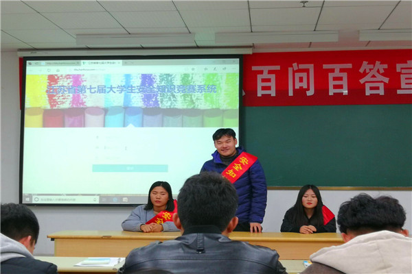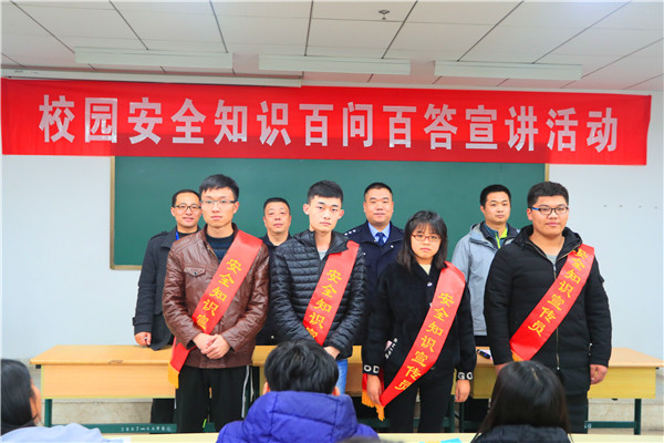 在宣讲及问答环节现场学生提出了自己关心的安全问题,三位宣传员结合100道安全问题做了详细的解答。