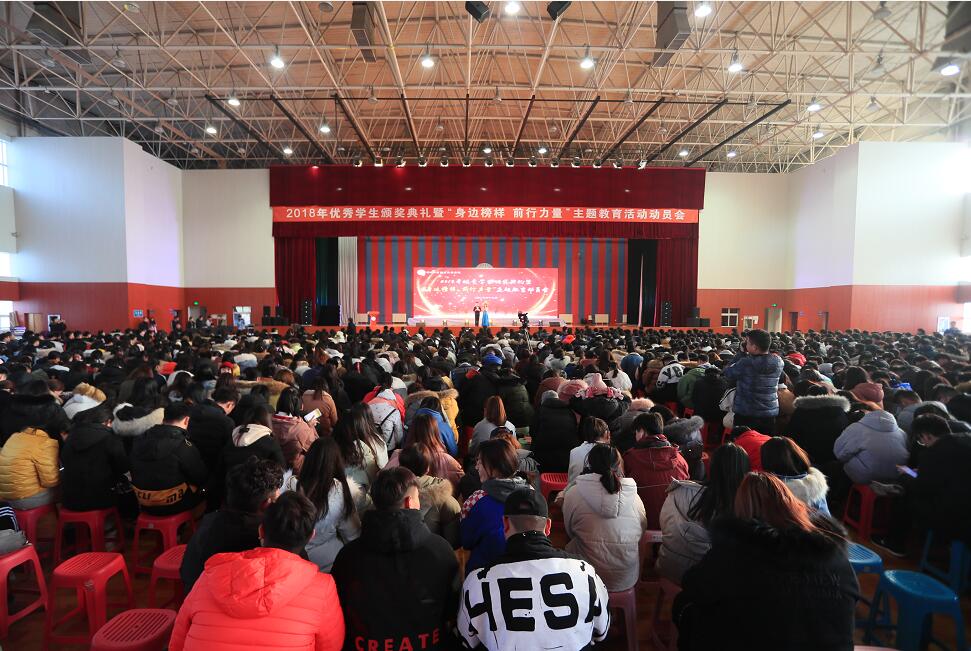 12月12日,2018年优秀学生颁奖典礼暨“身边榜样,前行力量”主题教育动员会在学校体育馆隆重举行。学校党委副书记李红、副院长张芳儒出席了大会,各二级学院党总支书记、相关职能部门负责人、优秀班主任代表、全体辅导员老师、优秀学生代表及全体2018级新生3000余人齐聚一堂,共同见证了属于徐工院学子的荣耀盛宴。
