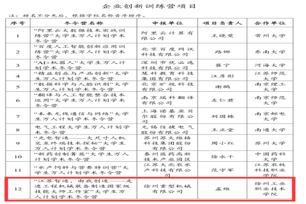 学校高度重视本次征集工作,校副院长鲍桂楠组织召开专题会议并对相关工作进行部署。经各二级学院申报、创新创业教育学院组织评审,由机电工程学院与徐州重型机械公司共同申报的江苏智造,由我创造——走进工程机械装备制造国家级技能大师工作室项目脱颖而出,获批冬令营项目立项。