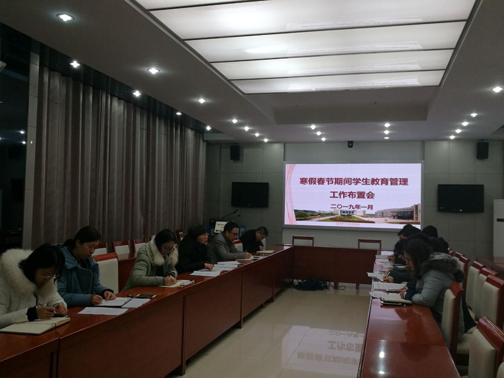 随后,各二级学院就本院学生留校学生具体情况、寒假安全教育工作、宿舍走访检查、寒假期间社会实践等一系列工作进行详细汇报。