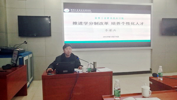 教务处处长李荣兵做了题为“推进学分制改革,培养个性化人才”的主题报告,介绍了台湾龙华科技大学学分制教育教学情况,以及我校学分制教学改革实施现况并就下一步我校学分制改革工作给出了思路和建议。