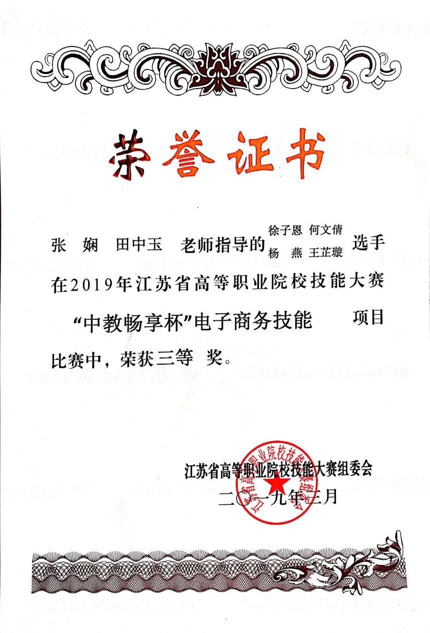 近日,江苏省高等职业院校技能大赛举行,工商管理学院学子竞赛中获得一等奖。