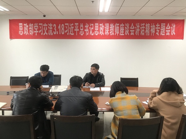 3月19日下午,思政部召开专题会议,学习交流习近平总书记在思政课教师座谈会上的重要讲话精神;全体参会教师发言积极踊跃,就如何办好新时代思政课、提升思政课教学实效、创新思政理论课改革,培养担当民族复兴大任的时代新人等问题,分享交流自己的所思所悟所感,并提出意见和建议。