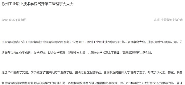 徐州市人民政府秘书长吴昊表示对学校长期以来服务徐州地方经济社会发展做出积极努力和突出贡献的给予了充分肯定。他希望学校抢抓徐州中心城市建设和职业教育发展契机,主动围绕地方主导产业发展、传统产业升级以及人才市场需求变化,加快建设区域开放共享的技能型人才实践教学中心、创新创业人才培养基地和技术研发服务中心,早日建成全国一流的高职院校,为“强富美高”新徐州建设做出新的更大贡献。该校党委书记祝木伟说,学校55年的办学实践积极探索校地合作和集团化办学模式,在江苏省示范性高职院校建设验收、全国高职教育创新发展行动计划实施过程中,第一届理事会紧紧围绕学校发展中心任务,在推进学校人才培养模式创新、教育教学改革、提高人才培养质量、彰显办学特色、提高社会服务能力等方面发挥了重要作用。第二届理事会大会的召开,将为该校进一步深化产教融合、创新人才培养模式、提升专业服务经济社会发展的能力奠定更加坚实的基础。