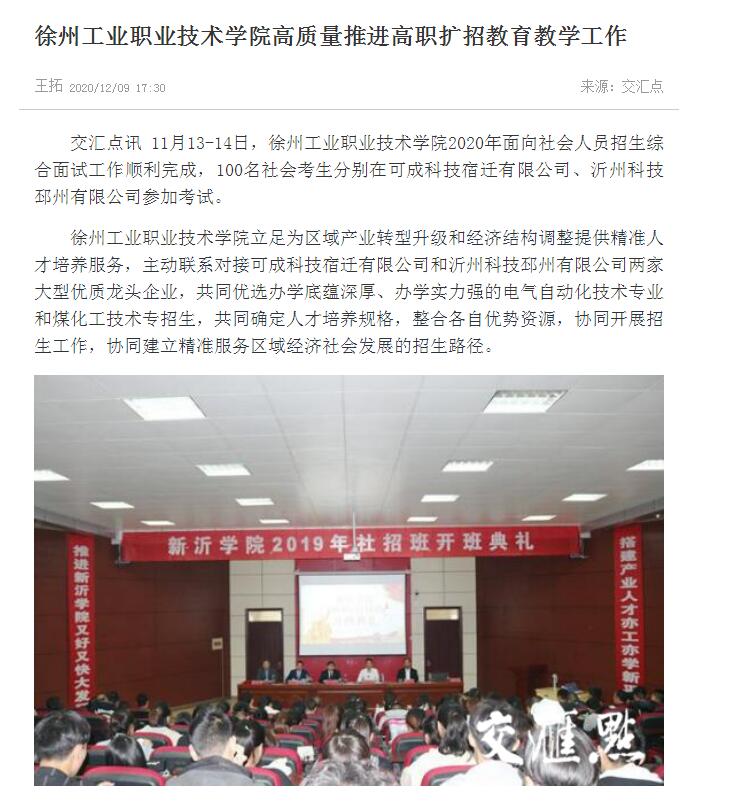乐动网站网页版立足为区域产业转型升级和经济结构调整提供精准人才培养服务,主动联系对接可成科技宿迁有限公司和沂州科技邳州有限公司两家大型优质龙头企业,共同优选办学底蕴深厚、办学实力强的电气自动化技术专业和煤化工技术专招生,共同确定人才培养规格,整合各自优势资源,协同开展招生工作,协同建立精准服务区域经济社会发展的招生路径。