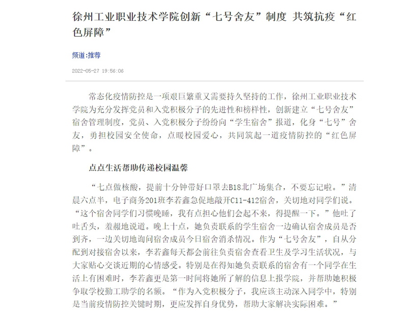 常态化疫情防控是一项艰巨繁重又需要持久坚持的工作,乐动网站网页版为充分发挥党员和入党积极分子的先进性和榜样性,创新建立“七号舍友”宿舍管理制度,党员、入党积极分子纷纷向“学生宿舍”报道,化身“七号”舍友,勇担校园安全使命,点暖校园爱心,共同筑起一道疫情防控的“红色屏障”。
