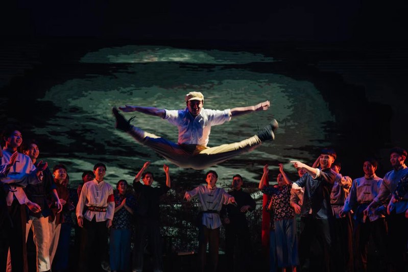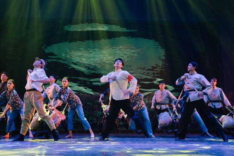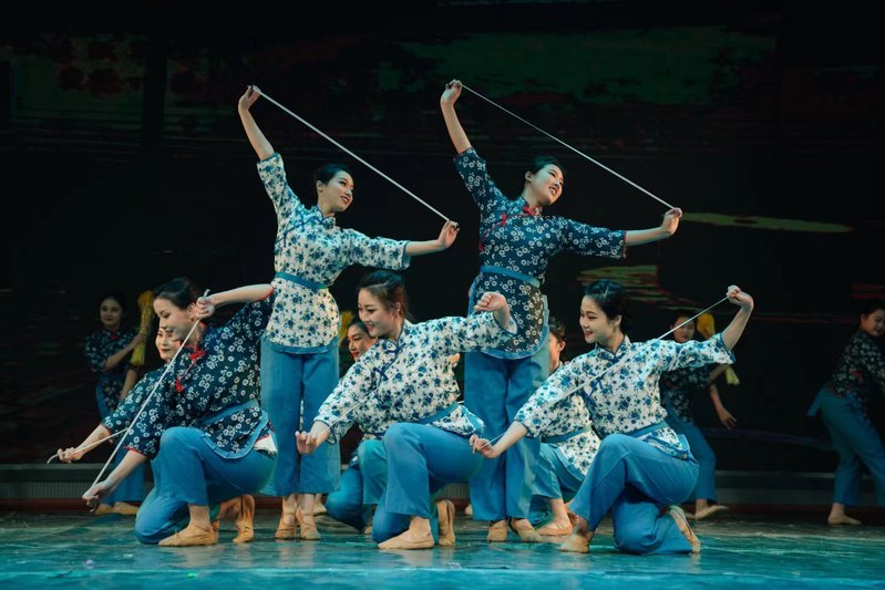 第三幕支前路上(20分钟)浩浩荡荡的小推车出发。支前路上,队长教大家学文化、学快板,解除路上的寂寞和艰难,增添欢乐。唐队长把腼腆的小通讯员推到中间表演节目。支前队伍为把军粮准时送到前线,不顾刺骨的河水,毅然跳下河搭起人桥护送军粮过河,不料却遭到敌机的偷袭,炮弹轰鸣声中,支前队伍义无反顾的前进……为了保护军粮,新婚丈夫牺牲了。