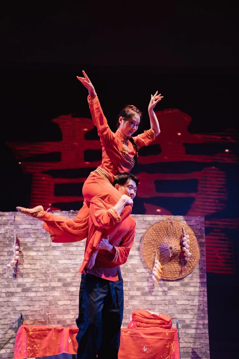 第四幕一世守望(20分钟)一辆小推车上,被子上的百合花显得极为刺目,一条腰带安静的躺在被子上,队长唐和恩推着小推车慢慢走来,新婚妻子看到百合花的被子和腰带后,丈夫嚎啕大哭。许久后,新婚妻子拿起腰带,慢慢的系到腰上,坚定的拉起小推车,再次踏上丈夫曾经支前的道路……