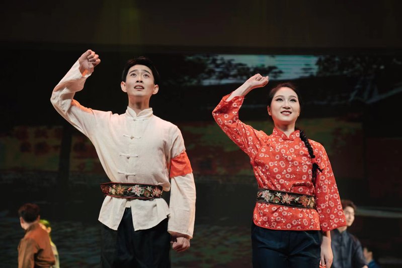 第一幕新婚离别(20分钟)一个普通的村子,欢快的唢呐声中,一辆小推车将一对新人送入洞房,夜深人静,新婚夫妇商量积极报名支前队伍。马上就要随支前队伍出发了,夫妻二人为了战场上能找到对方,互相交换了腰带,并互相叮嘱对方,期盼胜利归来。