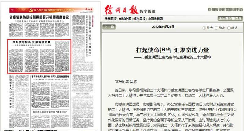 新闻来源:徐州新闻(2022年11月22日)、徐州日报(2022年11月21日)
