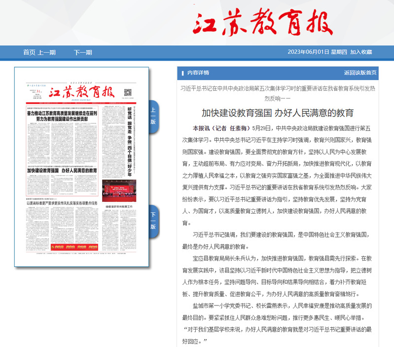 新闻来源:江苏教育报(2023年6月1日)