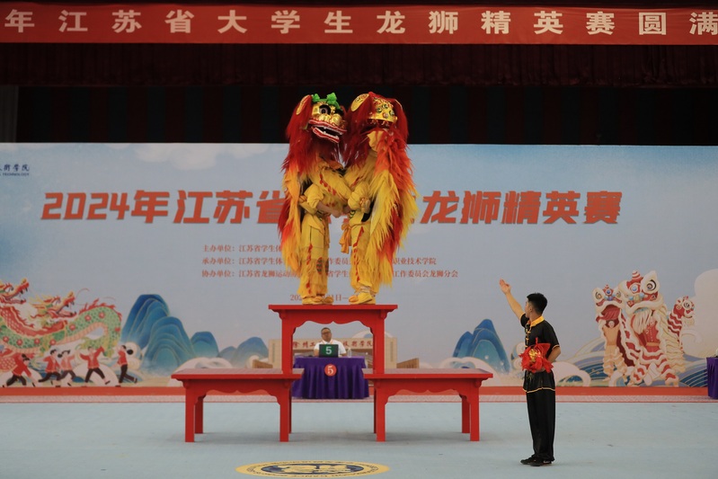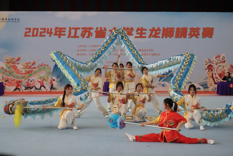 2024年5月31日-6月2日,江苏省大学生龙狮精英赛在我校体育馆隆重举行。我校龙狮队在体艺部部长宋广侠带领下,在李文明和王宇翔两位教练指导下,团结协作,勇争一流,取得4金1银,团体总分第一的优异成绩。