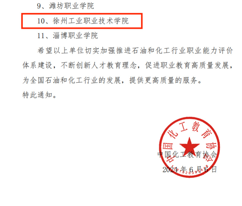 日前,中国化工教育协会公布11家单位为首批全国石油和化工行业职业能力评价基地,我校成功获选。副校长张芳儒代表学校接受全国石油和化工行业职业能力评价基地授牌。我校将以此为契机,围绕省市产业布局,深化产教融合,借助双高建设和本科创建,不断提升人才培养质量,为地方经济高质量发展提供支撑。
