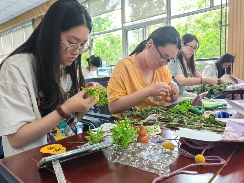 信息工程学院以“端午安康・艾香传情”为主题,开展了艾草花束DIY活动,为学生搭建感受端午节传统文化魅力的平台。活动伊始,老师向全体同学致以节日的问候,希望通过亲自动手制作蕴含端午特色的艾草花束,让大家在忙碌的工作学习之余放松身心,感受传统节日的魅力。活动现场洋溢着温馨与欢乐的气氛,老师和同学们围坐在一起,饶有兴致地将散发着清香的艾草和五彩绳等材料巧妙搭配。大家互相交流创意、分享技巧,笑语欢声不断。在轻松愉悦的氛围中,一束束寓意驱邪避疫、祈福安康的精美艾草花束在老师们手中诞生。此次活动让师生们在亲手制作艾草花束的过程中,体会到了端午节的独特风情并提高了动手能力,增进了师生之间的情感交流。