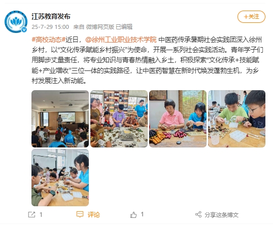 【江苏教育发布】中医药传承暑期社会实践团深入徐州乡村