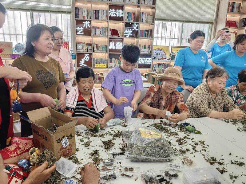文化传承的价值,最终要惠及民生。实践团精准对接乡村留守群体就业增收需求,借力徐州丰富药材资源和国潮中医兴起的热潮,开发了一系列门槛低、文化味儿浓的手作项目。在“残疾人之家”和社区活动室,村民们利用自产药材,制作驱蚊香囊、安神茶包、合香珠手串,实现了“家门口就业”。农场和种植基地里,孩子们参与辅助采药、制作标本框,劳动中接受教育。为打通销路,团队在校内市集和线上平台开设体验摊位,吸引游客付费制作中药风铃、耳环、书签等时尚文创,“亲手做”成为最佳卖点。团队还计划运营“岐黄工坊”抖音号,直播村民手作过程,讲述产品背后的文化故事,为传统手艺注入现代灵魂和品牌价值,带动村民增收。